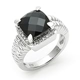Joy De Mer QR-10264-AM, Faceted Black Onyx Square Ring with Diamonds and Sterling Silver Ridged Band ...
