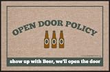 Open Door Policy. Show up with Beer, We'll Open the Door Humorous Durable Doormat