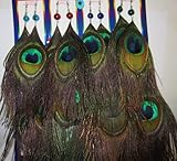 Glamour , 08 pairs peacock feathers earrings, handmade in Peru. long 6 inches with hook. aprox. ...